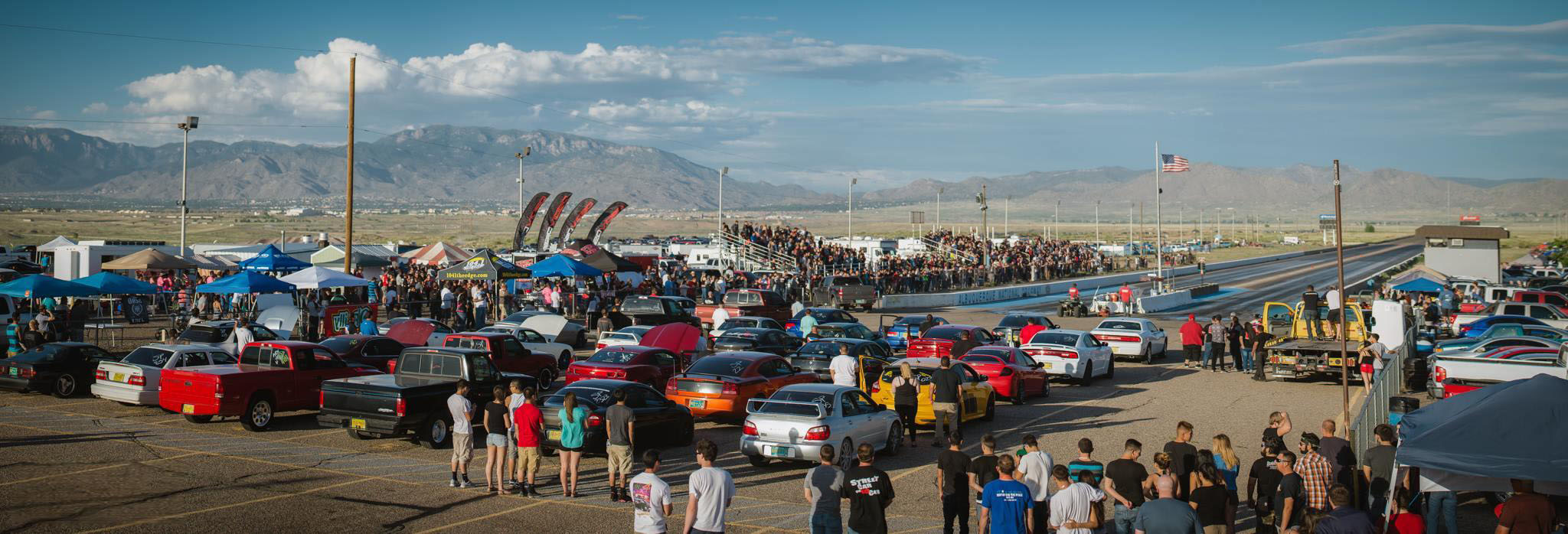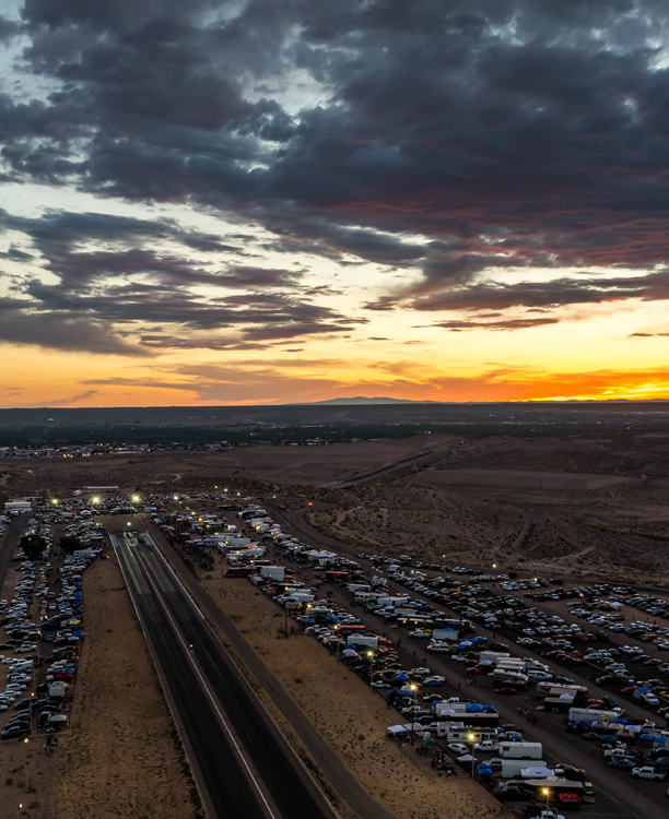 All Our Call Out is a biannual, grassroots, streetcar only, call-out-style drag race event. There is a mandatory drive from Albuquerque Dragway, doing a short drive to prove your car is an actual streetcar. Tickets are drawn for racers to “call out” the car and racer they want to face. This portion of the race allows for some strategy to mow through the sometimes 50+ cars in a given class, and, of course, the trash talk the drivers and crowd love. There are 6 single-elimination classes that can suit any experienced driver. Classes range from 14-second ET and slower cars all the way up to cars in the 7-second ET range. This great field of amazing cars brings out an array of fans. You’ll see the age-old rivalries, as well as Import vs. Domestic, Chevy vs. Ford, and so on. Not only is there exciting racing, but there’s plenty of stuff going on in the sponsor booths in the midway that funnels fans to the grandstands. There is always an assortment of food trucks and vendors