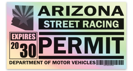 Flash some “official” flair with this holographic Street Racing Permit sticker – the ultimate tongue-in-cheek badge for every street-savvy car enthusiast. Designed to mimic a legit permit, this high-quality vinyl sticker adds a dose of rebellious humor to your ride.